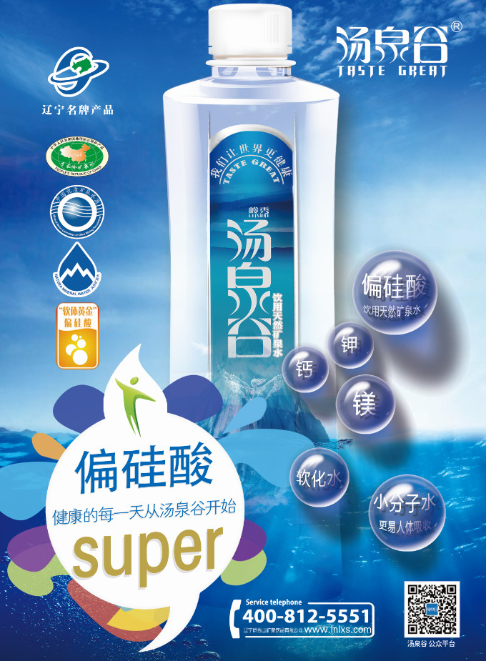 汤泉谷天然软质矿泉水,汲取自北纬41°至45°黄金软水域水源,处在可与阿尔卑斯山天然矿泉比肩媲美的地球黄金纬度水资源区间。长白山西麓新太古代,花岗岩断裂破碎带,经长期地下循环过滤形成。是低钠、低矿化度、重碳酸钙的偏硅酸型矿泉水,尤其富含“软体黄金偏硅酸“,其含量高出国家标准近一倍,具有优于普通矿泉的柔韧特质,维系身体血管通道的畅通活力,让全身及时获得养分而富有健康弹性。